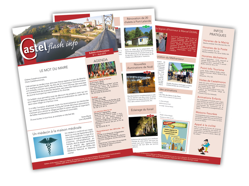 La municipalité de Castelmoron sur Lot (47) édite un bulletin municipal annuel présentant les projets et réalisations de l’année. (Evenements, travaux, rénovations, vie des associations, commerces, vie locale, sports, etc.)